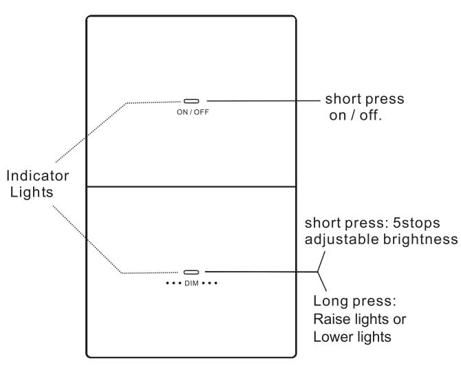 Note:When the dimming button (long press) reaches maximum or minimum brightness. The indicator light blinks slowly |