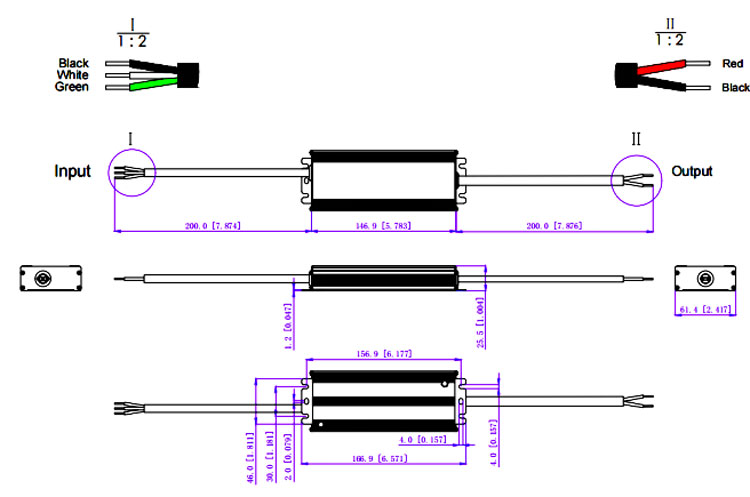 | Input wire | Black(L) White(N) Green(G) (3*18 AWG) |