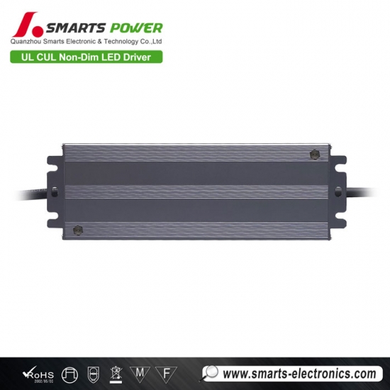 This 30W non-dimmable LED power supply features short-circuit, over-temperature, and overload protection functions. It boasts an IP67 waterproof rating and an aluminum housing design that ensures excellent heat dissipation. UL certified, it is primarily marketed to the North American region and comes with an exceptionally long 7-year warranty.