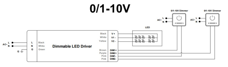 | Dimming wires | Brown(DIM1+) Purple(DIM2+) Pink(DIM1-) Pink(DIM2-) 4*18AWG |