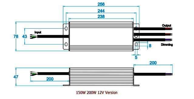 noted that 12V 200W is with 2 group of 2*16AWG output wires to separate the output current.)