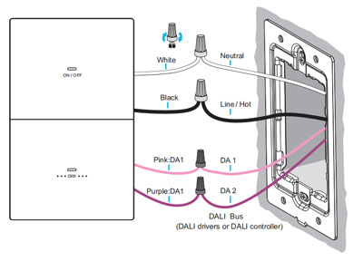 The push-button dali-2 dimmer with a universal input voltage range of 100-277VAC is compatible with existing standard wall boxes and can be easily installed in the mounting frame. The two-button design can switch and dim the lights in the group. It is easy to use. No additional configuration is required.