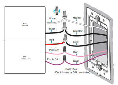 Note2:Connect the AC input live wire (L) of the DALI driver to the dimmer's Load wire(Red) .