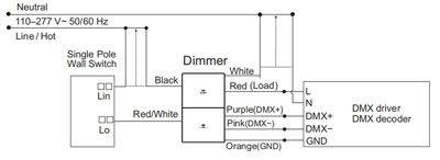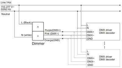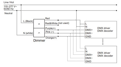 Note2:The dimmer and DMX driver/decoder are independently connected to the input power (AC mains)