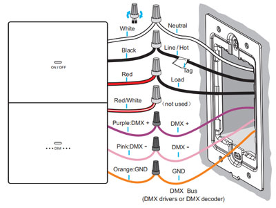Note2:Connect the AC input live wire (L) of the DMX driver to the dimmer's Load wire(Red) .