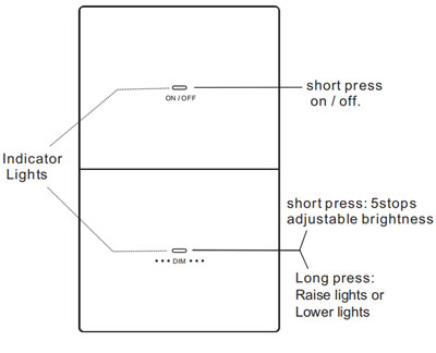 Note:When the dimming button (long press) reaches maximum or minimum brightness. The indicator light blinks slowly |