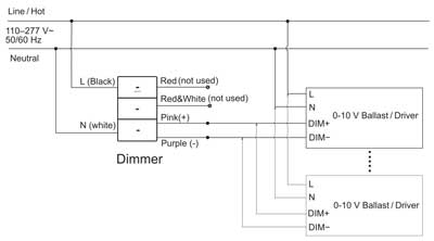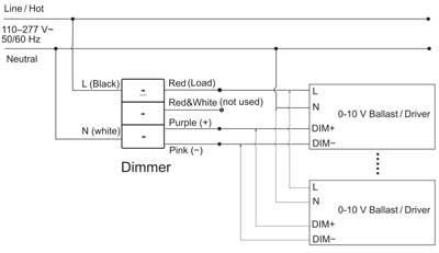 If the dimmer can start ,but the 0-10V Ballast/driver fails to start, please check whether the hot wire and neutral wire at the dimmer (or 0-10V Ballast/driver ) input are reversed.
