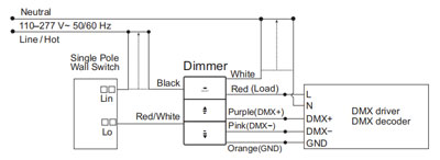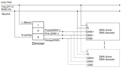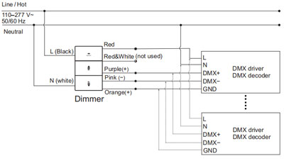 Note2:The dimmer and DMX driver/decoder are independently connected to the input power (AC mains)