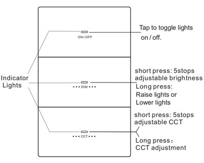 Note:When the dimming button (long press) reaches maximum or minimum brightness. The indicator light blinks slowly |