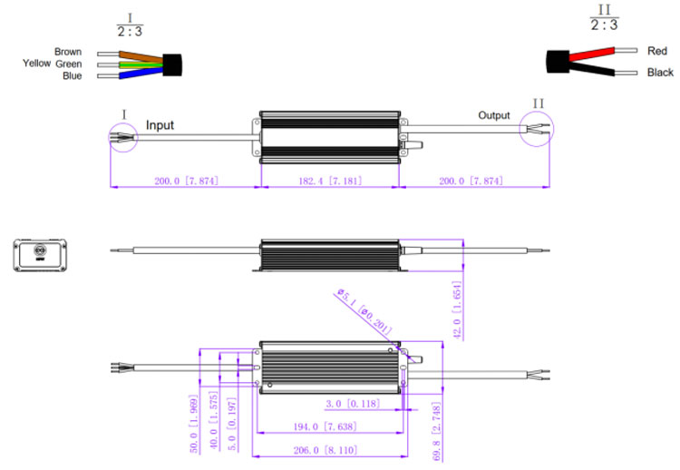 2. Output cable 2*16AWG, Red cable (+) to Positive side(+), Black cable (-) to Negative side (-).