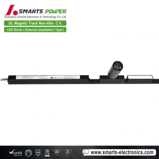 Smartspower non-dimmable LED power supply for magnetic track lights features built-in active PFC function and achieves a working efficiency of up to 93%. It has a full aluminum casing design for excellent heat dissipation and complies with global safety lighting regulations.