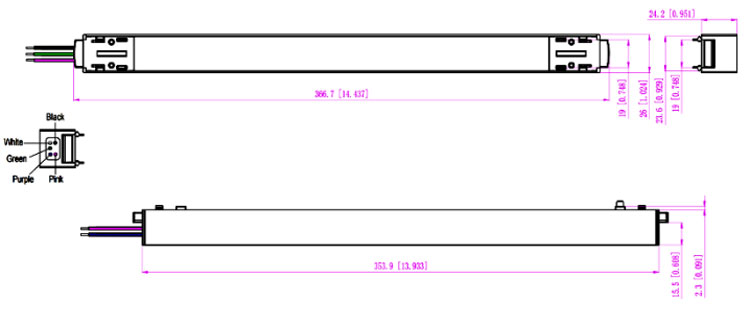 | Dimming wire | Purple(D+) Pink(D-)(2*0.35mm²) |