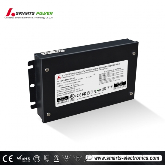 SMT-012-030VDH is 0-10V dimmable led driver with UL certification. It is 24v constant voltage led driver and output power is 30w. It also has 7 years warranty. The size is 165*92*26mm (L*W*H) and a weight of 0.95Kg.